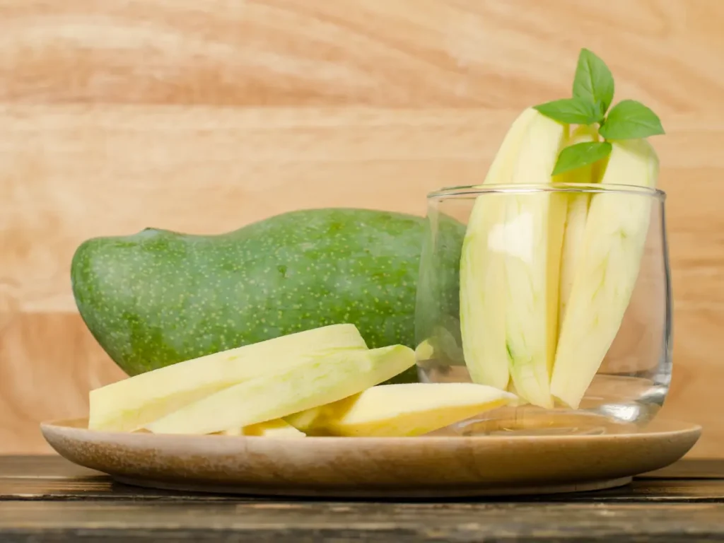 1 किलो कच्चे आम (धोकर सुखाए और छोटे टुकड़ों में कटे हुए)